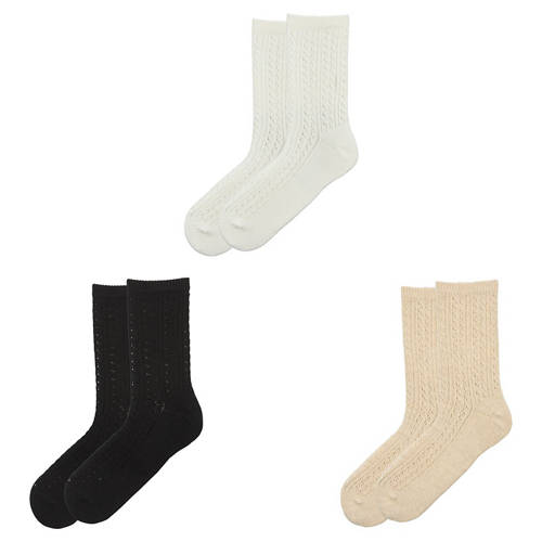 Damen Socken 3er-Pack, Pointelle Schwarz/Weiß/Creme, 39/42