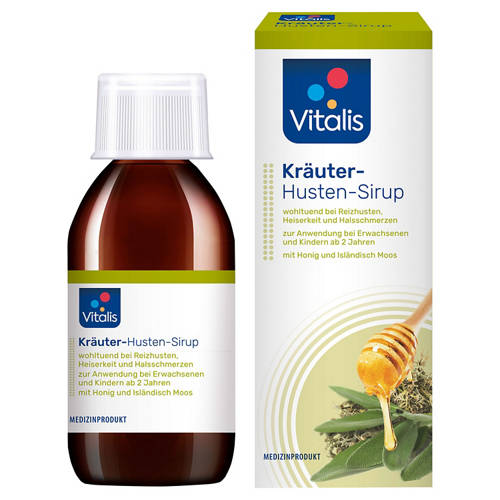 Besonders in der kalten Jahreszeit sind wir im Alltag einer erhöhten Ansteckungsgefahr ausgesetzt. Funktioniert der natürliche Schutzmechanismus des Körpers nicht ausreichend, kann eine Erkältung die Folge sein. Kräuter-Husten-Sirup enthält wertvolle Inhaltsstoffe wie Isländisch Moos und Honig, die sich als wirksamer Schutzfilm auf die Schleimhäute im Mund-, Hals- und Rachenbereich legen. Die angegriffenen Schleimhäute werden vor äußeren Reizen geschützt. Die gereizten Stellen werden spürbar beruhigt und Reizhusten, Heiserkeit und Halsschmerzen gelindert. Kräuter-Husten-Sirup schmeckt angenehm nach Holunder und Fenchel. Kräuter-Husten-Sirup ist ein pflanzlicher Sirup, der sich als Schutzfilm auf die gereizten Schleimhäute im Mund-, Hals- und Rachenbereich legt.