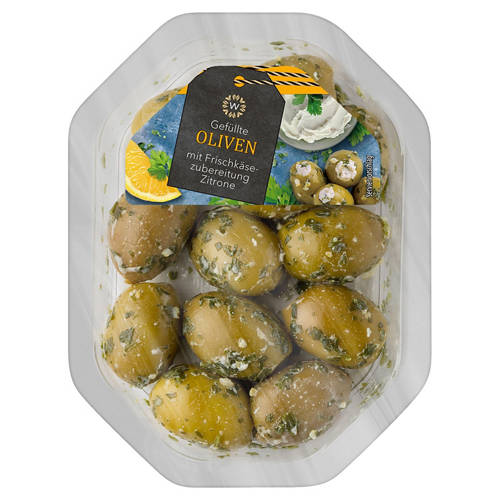 Olivenvariationen 100 g, Oliven mit Frischkäse-Zitrone