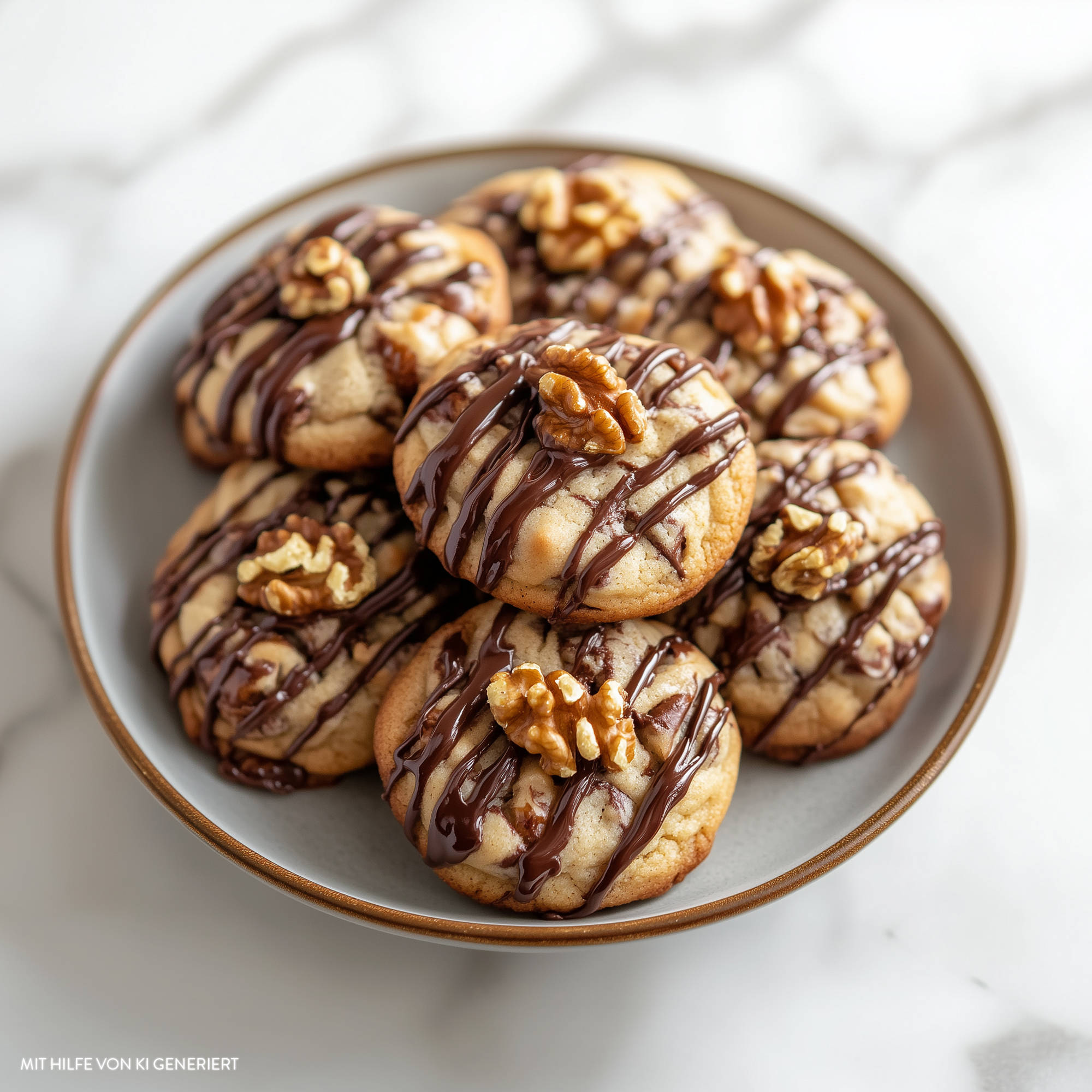 - Für die Walnusstaler: 50 g fein gemahlene Walnüsse unterkneten. Plätzchen ausstechen, backen und abkühlen lassen. Aprikosenkonfitüre erwärmen, durch ein Sieb streichen und je 2 Plätzchen damit zusammen setzen. Etwas von der restlichen Schokolade auf die Plätzchen spritzen und je eine Walnusshälfte darauf setzen.