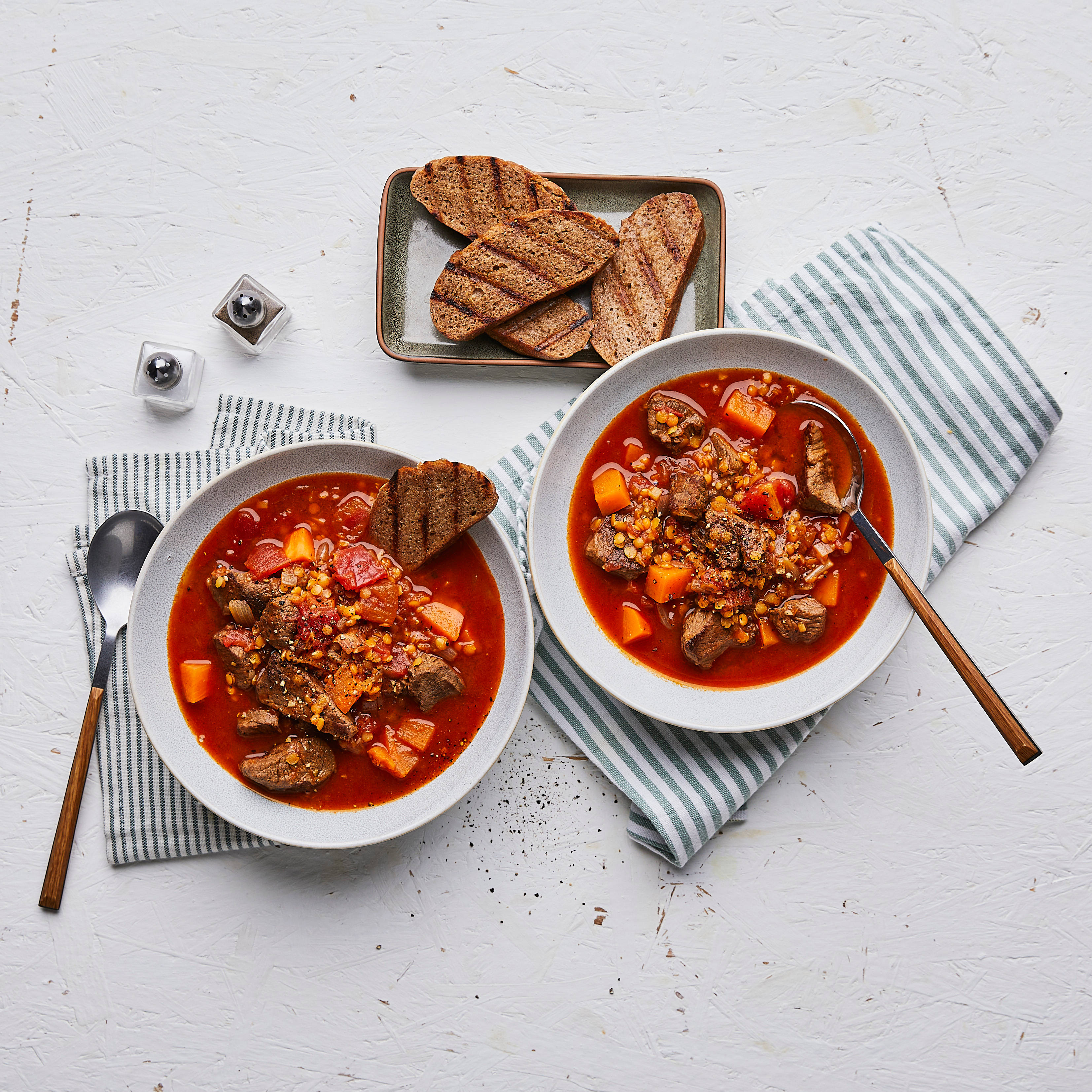 - Das Rindergulasch abschmecken und nach Bedarf nachwürzen. Das fertige Gulasch zusammen mit den Kartoffeln servieren.