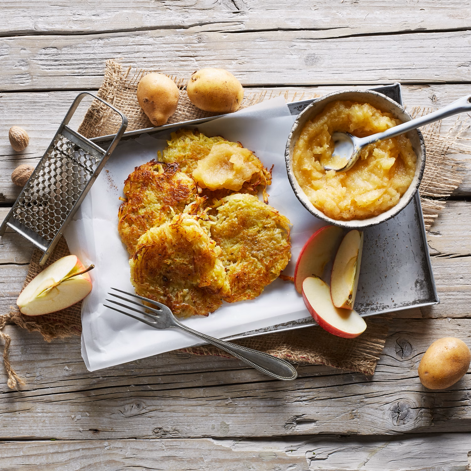 Nicht nur bei Kindern beliebt: Kartoffelpuffer mit Apfelmus sind schnell gemacht und schmecken richtig lecker.